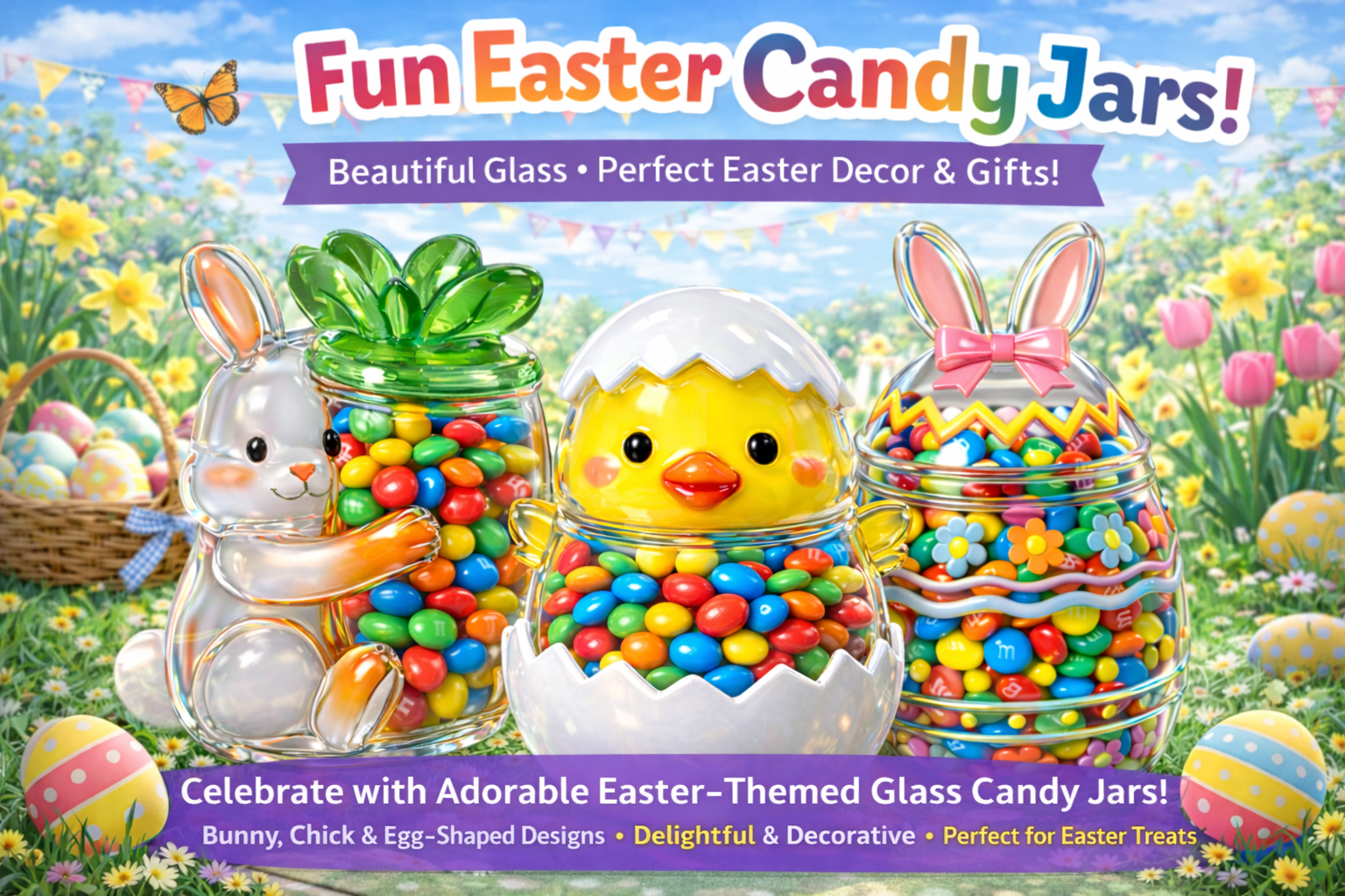 Bring joy, color, and festive charm to your home with our Easter Glass Candy Jar Collection — beautifully crafted decorative jars designed to brighten your holiday décor while storing your favorite treats.