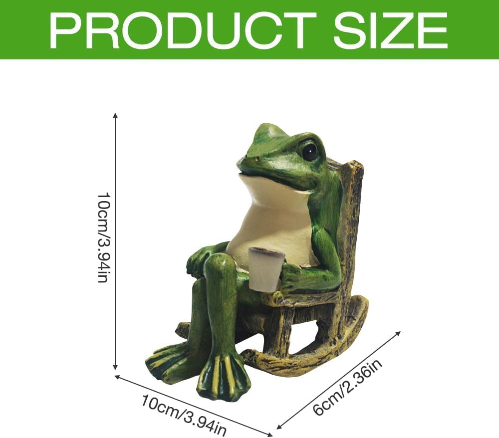 Charming Design – Whimsical frog sitting in a rustic rocking chair, adding personality to your garden, patio, or indoor space.